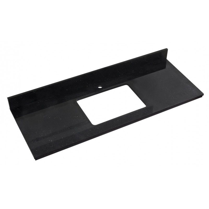 American Imaginations AI-19304 116.45-in. W Floor Mount Distressed Antique Walnut Vanity Set For 1 Hole Drilling Black Galaxy Top Biscuit UM Sink