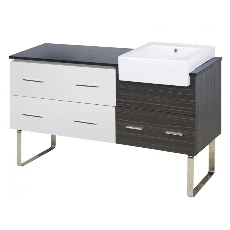 American Imaginations AI-19748 60.75-in. W Floor Mount White-Dawn Grey Vanity Set For 3H4-in. Drilling Black Galaxy Top