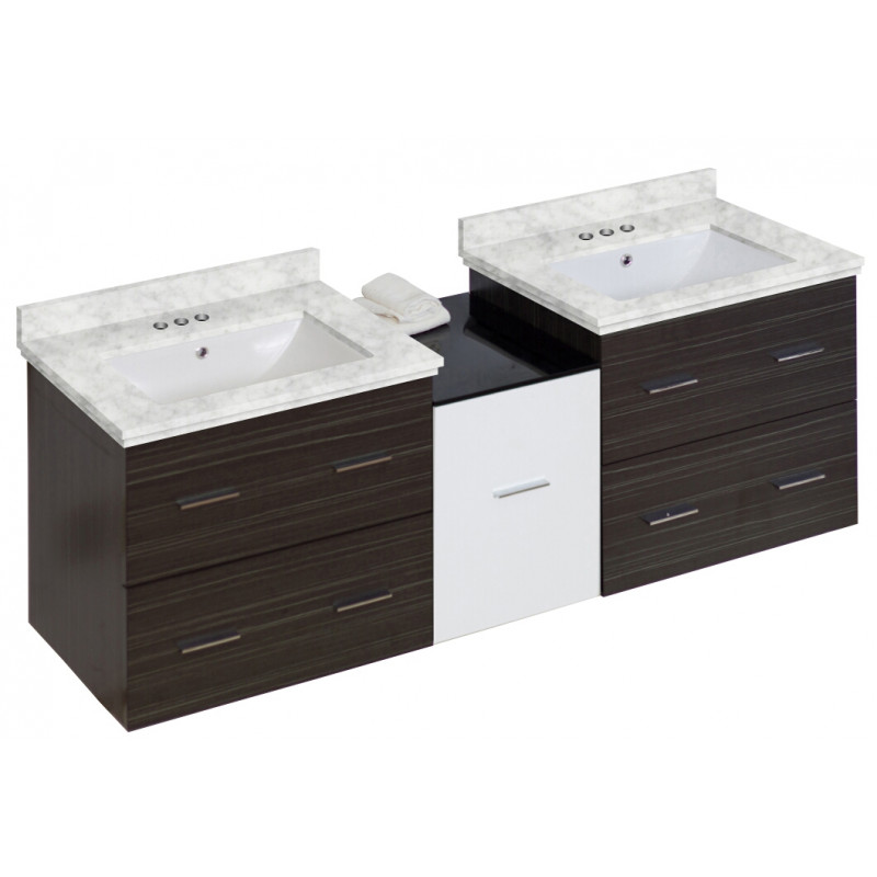 American Imaginations AI-20030 61.5-in. W Wall Mount White-Dawn Grey Vanity Set For 3H4-in. Drilling Bianca Carara Top White UM Sink