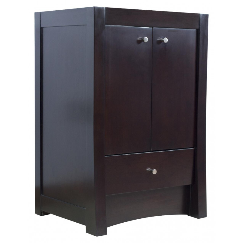 This transitional vanity set belongs to the exquisite Elite design series. It features a rectangle shape. This vanity set is designed to be installed as a floor mount vanity set. It is constructed with birch wood-veneer. This vanity set comes with a lacquer-stain finish in Distressed Antique Walnut color. It is designed for a 1 hole faucet.