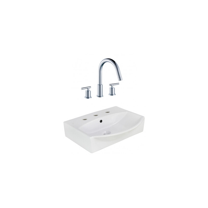 American Imaginations AI-22645 19.5-in. W Wall Mount White Vessel Set For 3H8-in. Center Faucet - Faucet Included