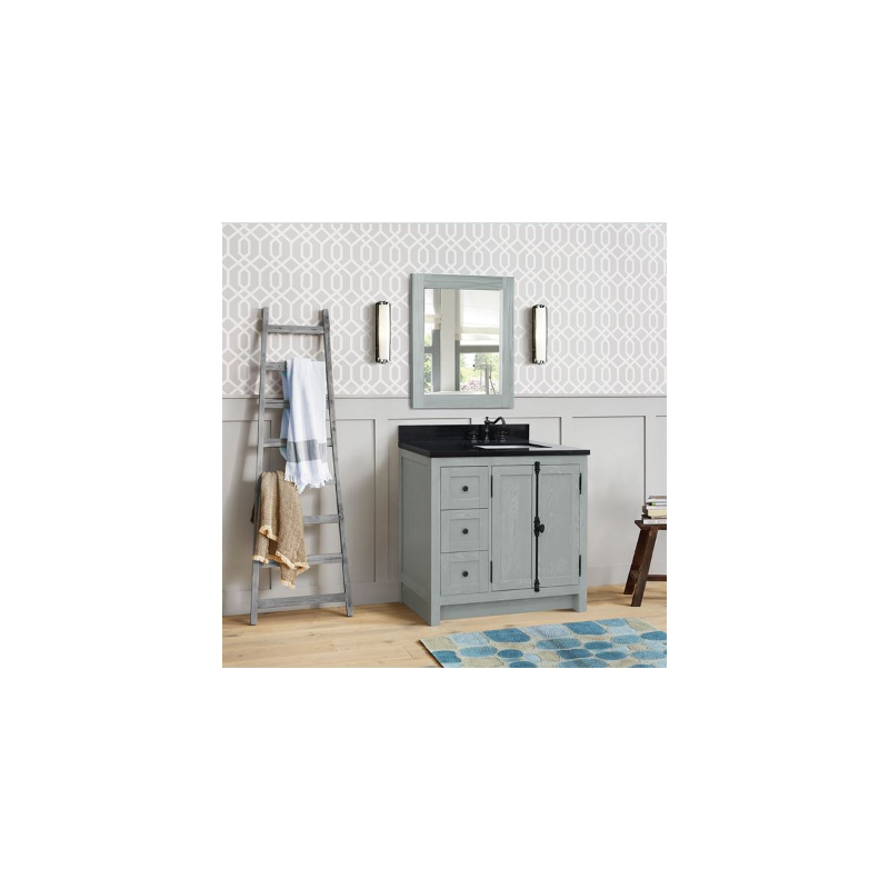 Bellaterra 400100-37R-GYA 37" Single Vanity In Gray Ash Finish Right Doors/Right Sink