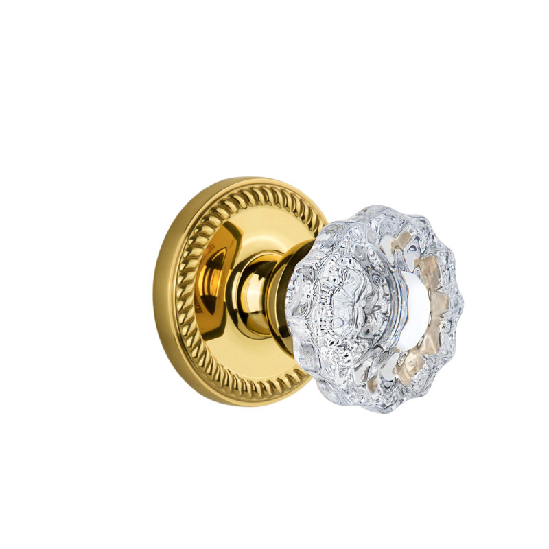 A consummate favorite for centuries, the Newport rosette sets the standard in master craftsmanship with its rich, sculpted rope detail. Pair this with our Versailles knob, with its smooth center and fluted edges, for an eye-catching look. All Grandeur crystal knobs are created from 24% lead crystal for unparalleled clarity and beauty, and mounted on a solid (not plated) forged brass base.