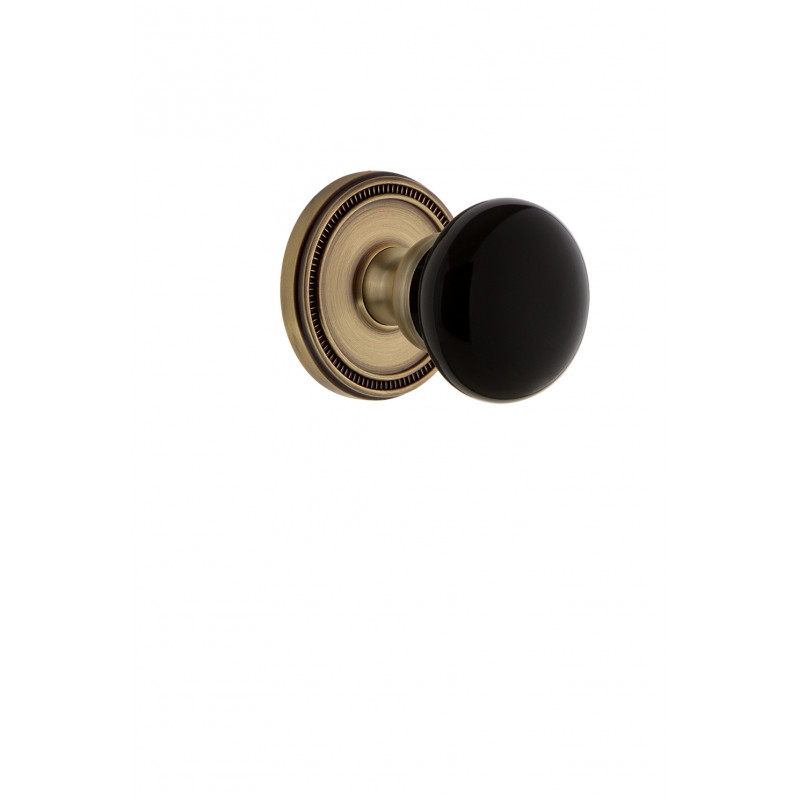 The unique Soleil plate has a corona of vivid lines that bring a dynamic boldness to any room. Adding to our collection of porcelain knobs, the Coventry black porcelain knob holds an ageless design that radiates pure charm and style. All Grandeur products are created from solid (not plated) forged brass.