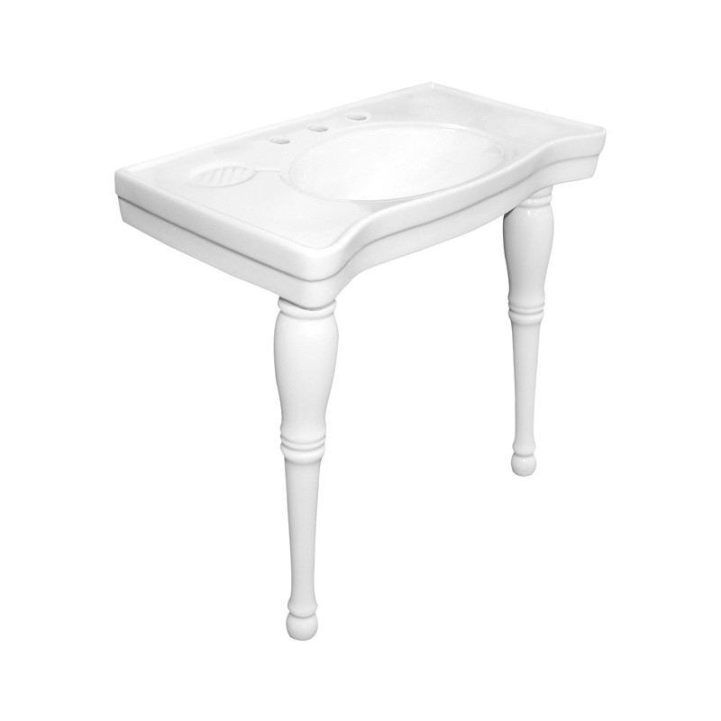 The generous space of the faucet deck is double-layered with two legs supporting its stance. With a three-hole faucet drilling plus an overflow hole on the back end of the basin, the Imperial basin is built to provide functionality but also with a European appeal.