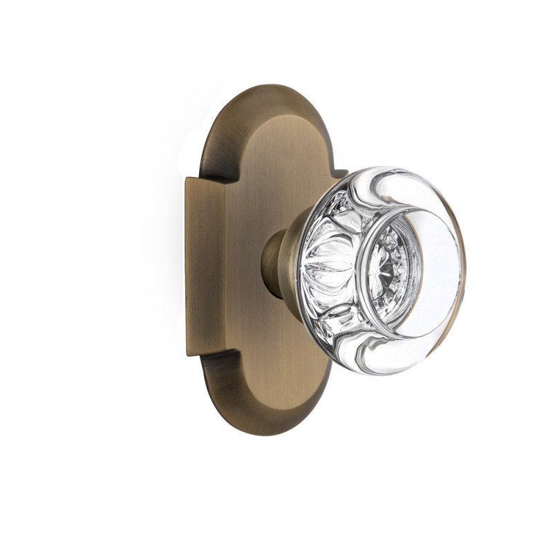 The Cottage plate combines principled design with a hardy sensibility. Taller than standard rosettes and more petite than long plates, the Cottage provides a happy medium for any modern or traditional home. Adding our Round Clear Crystal door knob, which features a circular shape that magnifies the beautiful facets underneath, only serves to bring the past alive. All Nostalgic Warehouse door knobs are mounted on a solid (not plated) forged brass base for durability and beauty.
