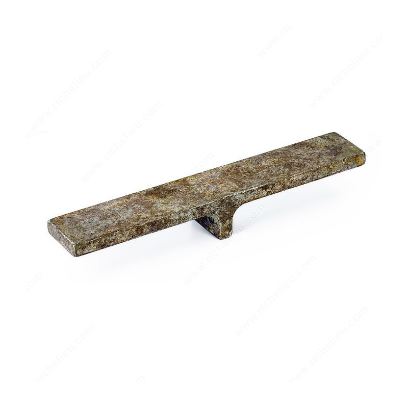The industrial style finish on the T-shaped pull will make a bold impact on furniture and cabinetry.