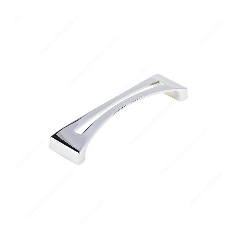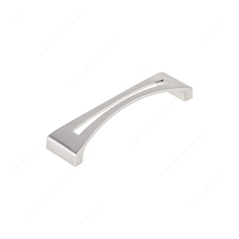 This modern pull with a contoured cutout center and flared ends will add a touch of elegance to your cabinetry and furniture.